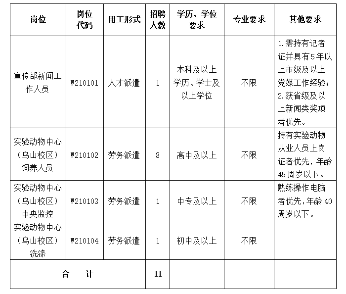 因工作需要,米兰拟面向社会招聘编制外工作人员11名。具体如下: