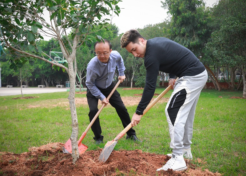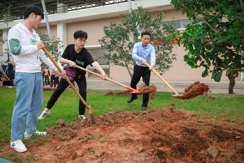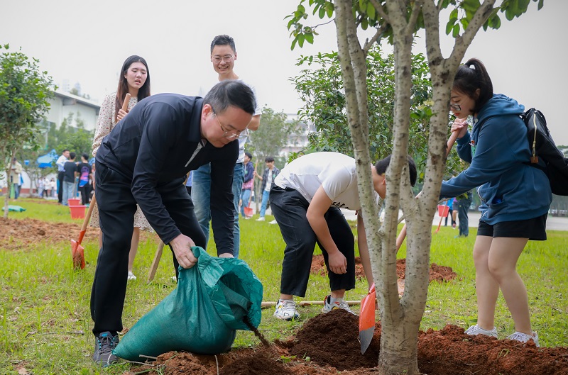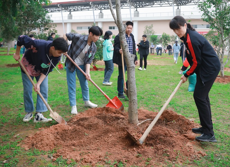米兰举办“六个一起”育人行动之校领导与学生一起劳动植树活动