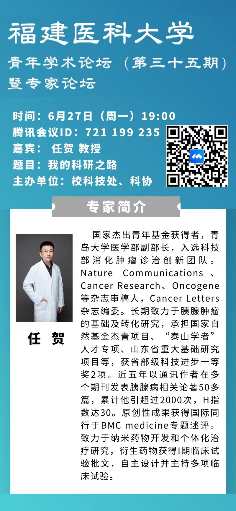 青岛大学医学部副部长,消化肿瘤诊治中心主任,泰山学者特聘教授,美国胰腺病学会青年科学家,入选科技部消化肿瘤诊治创新团队。Nature Communications、 Cancer Research、Oncogene等杂志审稿人,Cancer Letters杂志编委。