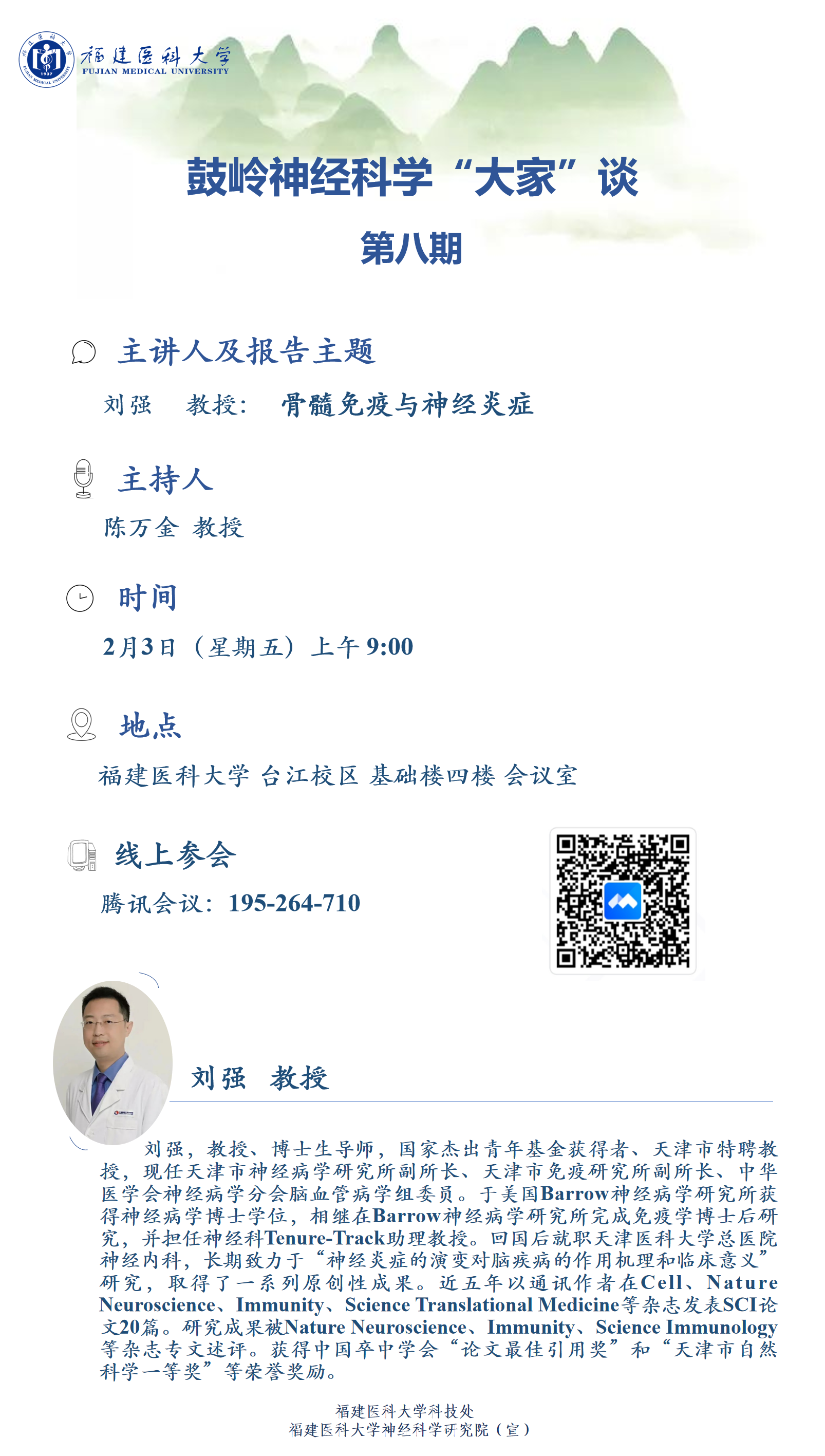 讲座主题: 骨髓免疫与神经炎症 (刘强 教授)