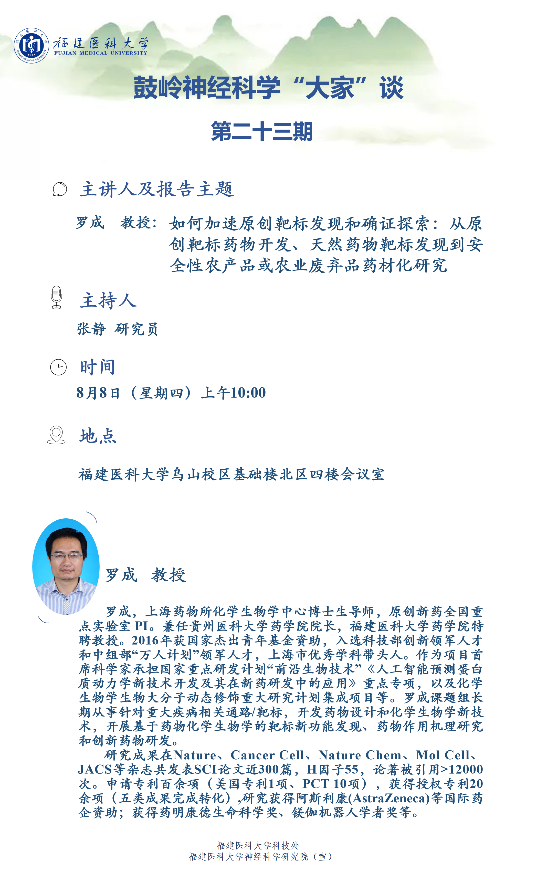 讲者:罗成 教授(上海药物所化学生物学中心)