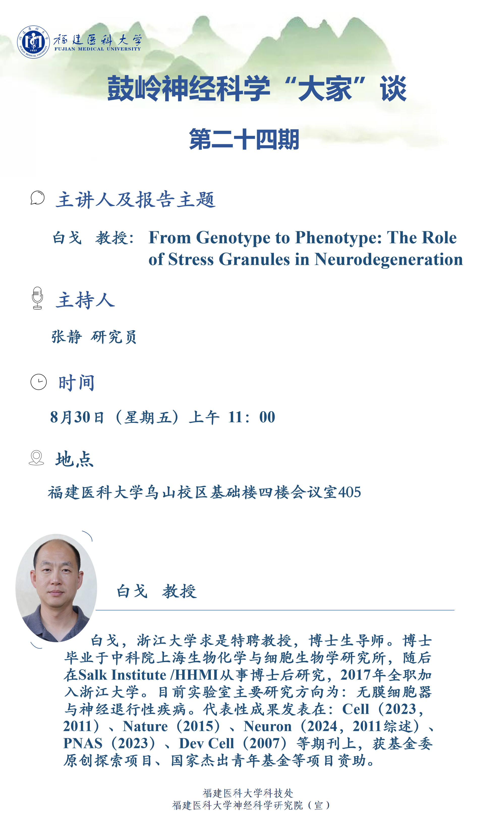 讲座主题: From Genotype to Phenotype: The Role of Stress Granules in Neurodegeneration