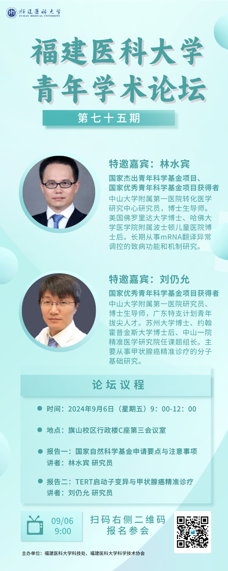 9:00-10:30 | 林水宾 国家杰出青年科学基金项目、国家优秀青年科学基金项目获得者 | 国家自然科学基金申请要点与注意事项 |