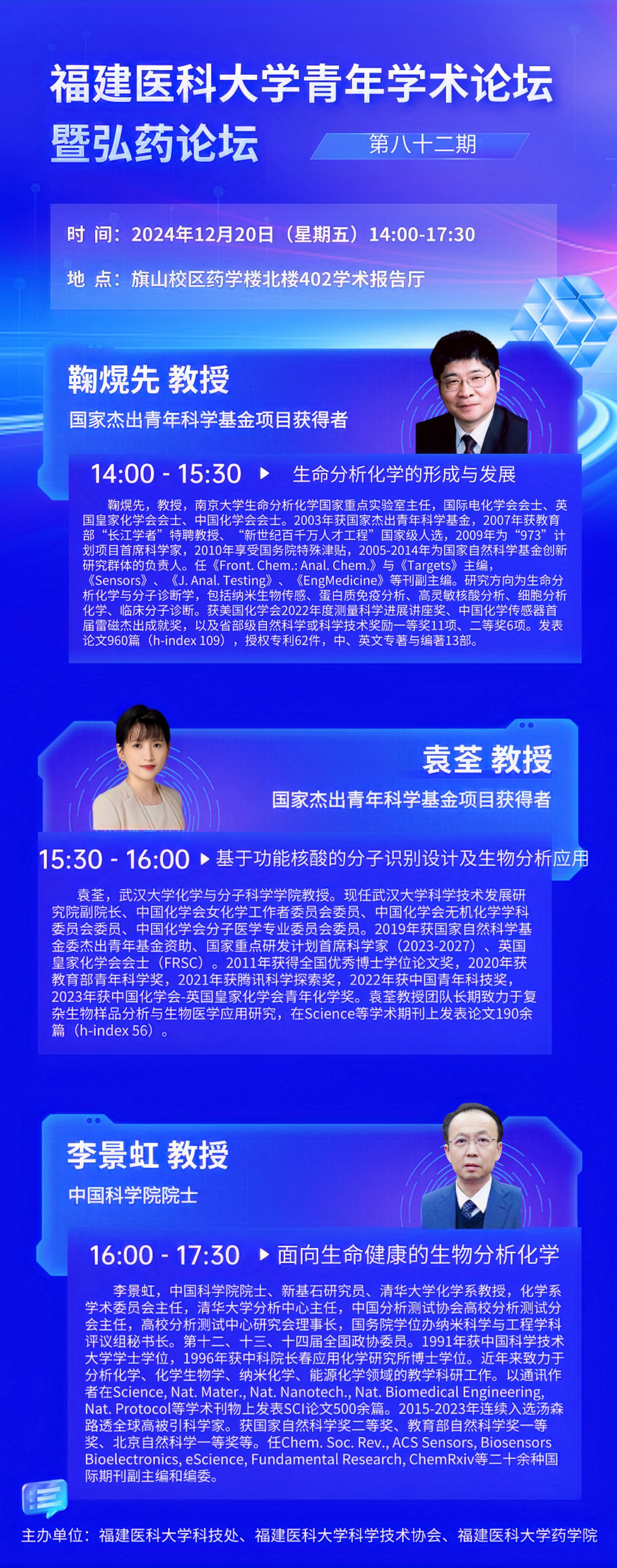 14:00-15:30 | 鞠熀先教授(国家杰出青年科学基金项目获得者) | 生命分析化学的形成与发展 |