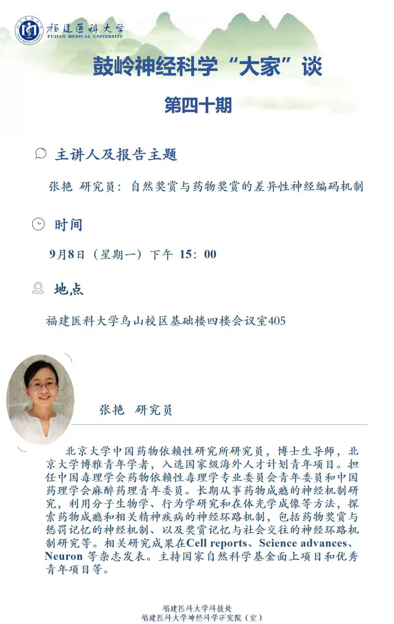 讲座主题:自然奖赏与药物奖赏的差异性神经编码机制
