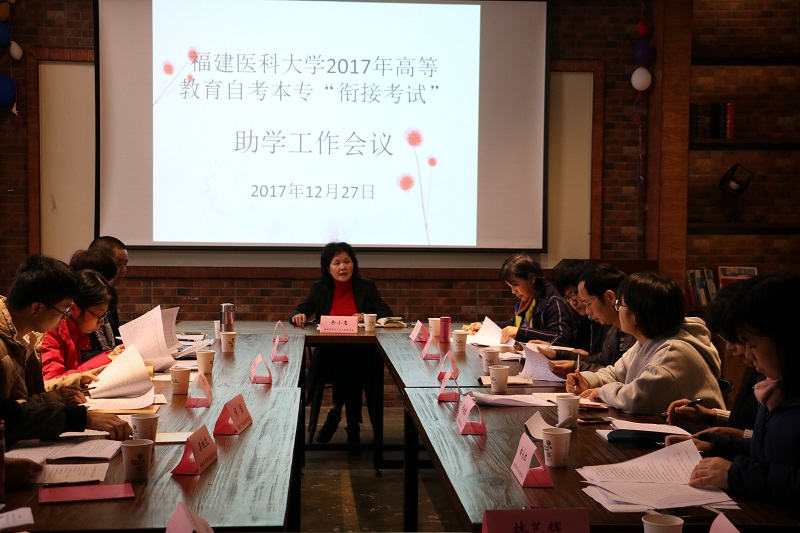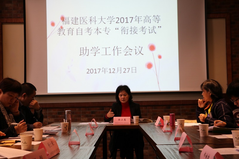 12月27日上午,米兰在台江校区“医创空间”召开了2017年自考本专“衔接考试”助学工作会议,会议由成人教育学院余小惠院长主持,成人教育学院相关工作人员、7个助学点有关领导及工作人员出席了本次会议。