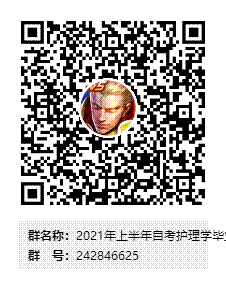 (7)本次报名参加护理学毕业论文(课程代码10226)考核的考生 请QQ扫码(见下图)加入“2021年上半年自考护理学毕业论文考核通知群”;本次报名参加生物化学(三)(实践)(课程代码03180)、药理学(一)(实践)(课程代码02904)、临床考核(课程代码06854)考核的考生, 请QQ扫码(见下图)加入“2021年上半年自考护理(专科)实践性环节考核通知群”;本次报名参加药理学(四)(实践)(课程代码06832)、药剂学(二)(实践) (课程代码01762)考核的考生 请QQ扫码(见下图)加入“2021年上半年自考药学实践性环节课程考核通知群”。请已报名的考生务必加入相应的考核通知群,将群昵称修改为“准考证号+姓名”,并及时关注考核有关信息。