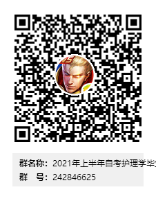 6)本次报名参加护理学毕业论文(课程代码10226)考核的考生 QQ扫码(见下图)加入“2021年上半年自考护理学毕业论文考核通知群”,并将群昵称修改为“准考证号+姓名”,并及时关注考核有关信息。