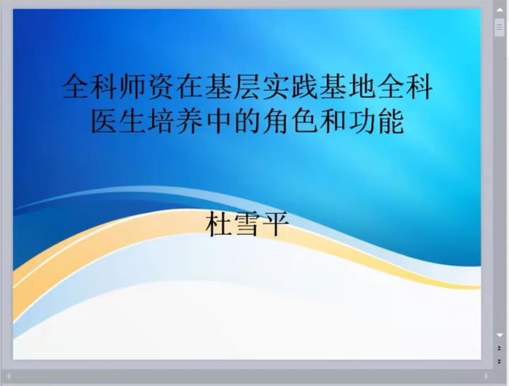 中国医师协会全科医师分会名誉会长、首都医科大学杜雪平教授授课