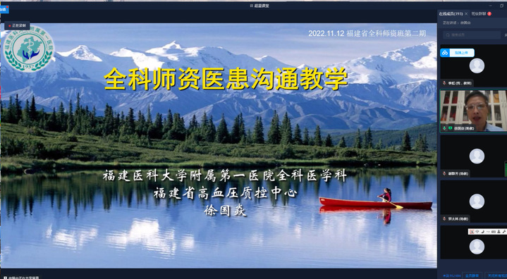 本期培训针对前期省内全科医生培训基地评审和督导检查中发现的问题和不足,围绕全科医学教学及诊疗的发展实际,精心设计教学内容,从全科医生培训基地建设、全科师资队伍建设、 全科临床常用教学方法、教学评估与反馈、SOAP病历书写、岗位胜任力培养等方面对全科师资如何提高诊疗及带教能力进行了系统的指导,为省内全科医生培训基地建设及管理提供了有力借鉴,对提升我省全科医学带教师资自身岗位胜任力和全科医学学科发展水平具有重要意义。(福建省全科医学培训中心、继续教育学院)