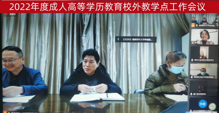 1月10日上午,我院在台江校区召开2022年度成人高等学历教育校外教学点工作会议。我院与厦门医学院、泉州医学高等专科学校、漳州卫生职业学院、三明医学科技职业学院、闽西职业技术学院、湄洲湾职业技术学院、宁德师范学院等7个校外教学点负责人、教学管理人员参加了会议。