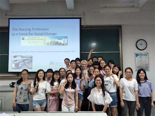 2017512日,米兰客座教授加拿大哥伦比亚大学Sally Thorne在大学城第1教室为护理学院2016级本科学生授课,授课题目为《The Nursing Profession as a Force for Social Change:How Can Nursing Play a Role in Shaping a Society that Supports Health for All?》。Sally Thorne教授向学生介绍了在世界护理发展史中重要的人物、组织、事件,以宏大的发展观向学生展示了护理在社会进程中的重要作用和意义,引导学生思考如何看待当代护理的发展、现状及所存在的问题,作为一名未来的从业人员,如何做好自身准备为护理的未来及社会的进程发挥自己的力量。Sally Thorne教授生动、有趣的讲述获得了学生阵阵掌声,对自身从业经验的分享深深感染了学生,对学生问题的认真回答更是展现了一名优秀护理从业者的深厚学术积淀及职业情感。学生表示,本次授课,不仅使他们进一步了解护理历史,更使他们更加坚定了学好专业知识改善社会保健的信心。