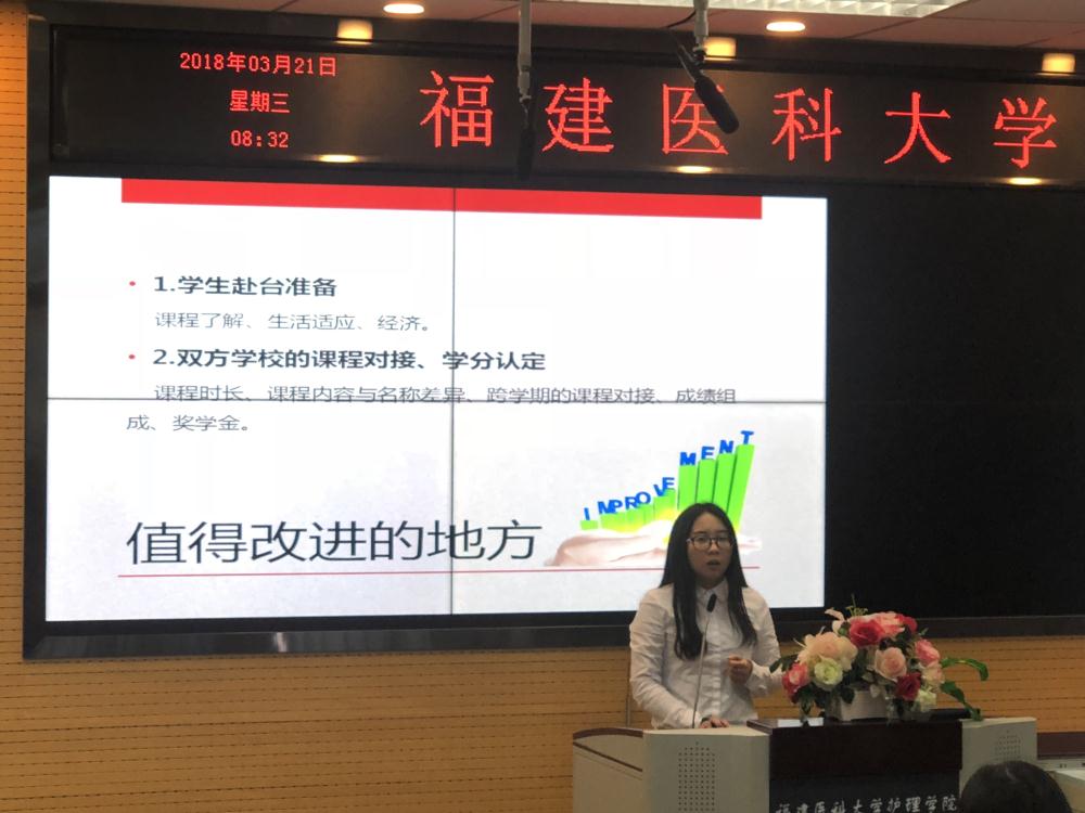 3月21日,为总结米兰2017年选派学生赴台交流学习工作,在护理学院一楼示教室召开米兰赴台交流学生座谈会,学生工作处、教务处负责同志及护理学院、公共卫生学院、人文学院分管学生工作的院领导和相关辅导员参会。会上,赴台学生代表逐个发言,不但介绍了自己在台湾期间的学习、生活情况,同时也谈了在台期间所见所闻以及各自的心得体会。赴台教师也就在台期间如何做好学生管理工作情况作了简单的介绍。座谈会上各相关部门、各学院管理学生的负责同志充分肯定了师生们在台学习期间各方面的表现,并希望他们在今后的学习生活中将台湾的所见所得多多和同学们分享。