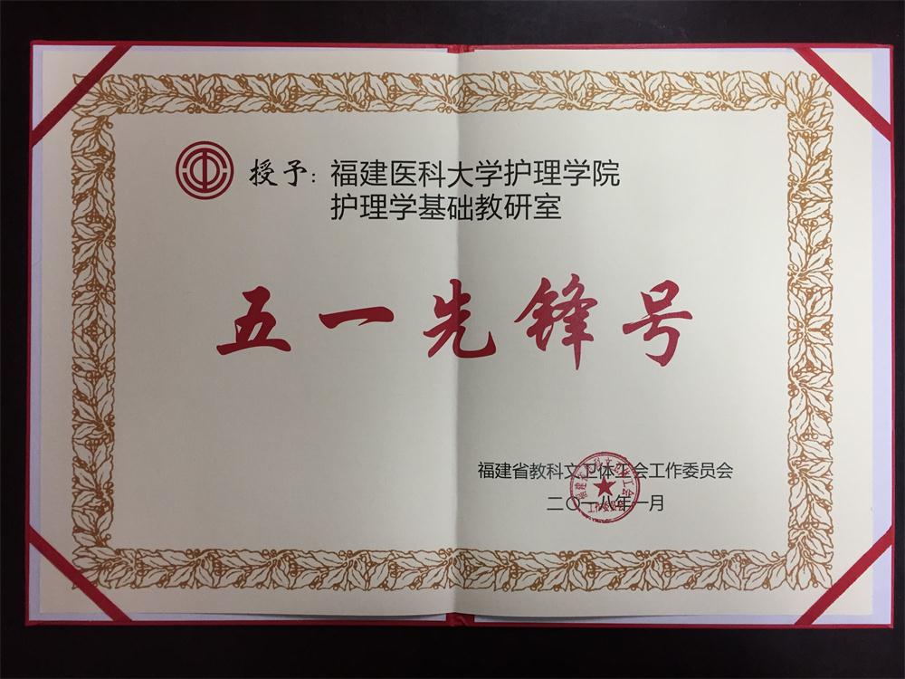 日前, 福建省科教文卫体工会工委下发《关于表彰福建省教科文卫体系统模范教(职)工之家(小家)和命名省教科文卫体系统五一先锋号的决定》(闽教科文卫体工【2018】2号),我院护理学基础教研室荣获福建省“五一先锋号”称号。
