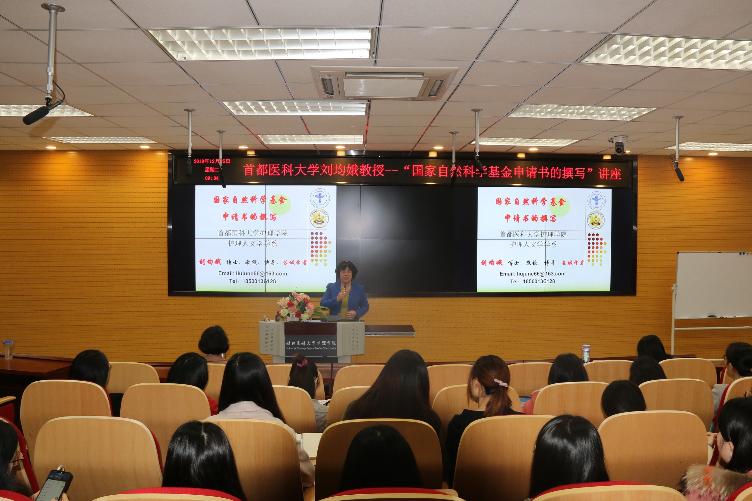 2018年12月25日,学院邀请首都医科大学护理学院刘均娥教授为专兼职教师、全体研究生开展题为《国家自然科学基金申请书的撰写》专题讲座。刘均娥教授就申报国家自然科学基金应具备的资质、申报的学科代码及申请书的撰写技巧等方面进行了详细的讲解,并现场为学院师生进行了答疑解惑。刘均娥教授还对学院教师的国自然标书进行了一对一指导,提升了学院教师标书的撰写质量,开拓了科研思维。与会师生纷纷表示讲座和指导极大拓展了大家对国自然基金申请书的撰写思路和方法,对提升学院科研队伍理论著作水平具有重要指导意义。