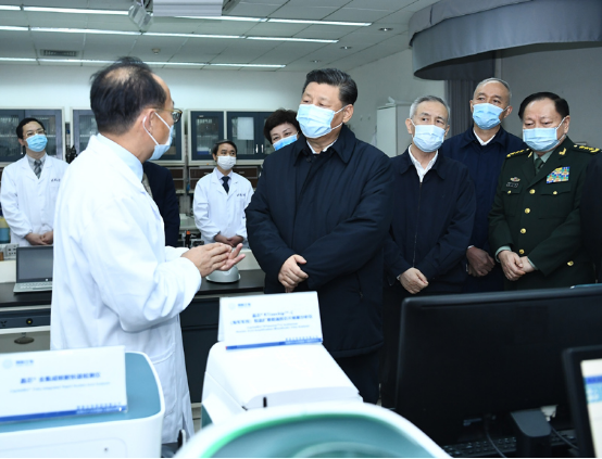 中共中央总书记、国家主席、中央军委主席习近平2日在北京考察新冠肺炎防控科研攻关工作,代表党中央向奋斗在疫情防控科研攻关一线的广大科技工作者表示衷心的感谢和诚挚的问候。他强调,人类同疾病较量最有力的武器就是科学技术,人类战胜大灾大疫离不开科学发展和技术创新。要把新冠肺炎防控科研攻关作为一项重大而紧迫任务,综合多学科力量,统一领导、协同推进,在坚持科学性、确保安全性的基础上加快研发进度,尽快攻克疫情防控的重点难点问题,为打赢疫情防控人民战争、总体战、阻击战提供强大科技支撑。