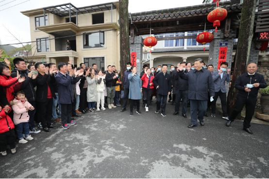 3月29日至4月1日,中共中央总书记、国家主席、中央军委主席习近平在浙江考察。这是3月30日,习近平在湖州市安吉县天荒坪镇余村考察时,向村民们挥手致意。