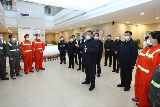 离开港区,习近平前往宁波北仑大碶高端汽配模具园区,考察中小型民营制造业企业宁波臻至机械模具有限公司,听取企业生产经营及复工复产情况介绍。习近平来到生产线旁,同工人们亲切交谈,询问大家返岗途中是否都顺利、复工后生产生活上还有哪些困难、工资发放是否正常。习近平指出,大家克服疫情影响,及时返岗复工,既是为企业好、为国家好,也是为自己好。企业正常生产就能保障国家经济正常运行,就能给大家创造就业机会,大家有收入,家里就有了保障。习近平强调,我国中小企业有灵气、有活力,善于迎难而上、自强不息,在党和政府以及社会各方面支持下,一定能够渡过难关,迎来更好发展。