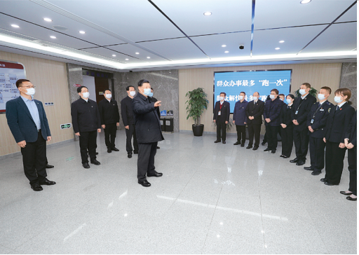 2020年3月29日至4月1日,中共中央总书记、国家主席、中央军委主席习近平在浙江考察。这是3月30日,习近平在湖州市安吉县社会矛盾纠纷调处化解中心,了解群众矛盾纠纷一站式接收、一揽子调处、全链条解决模式运行情况。 新华社记者 鞠鹏/摄