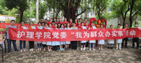 为推动党史学习教育成果转化为为群众办实事的实际行动,6月6日上午,护理学院党委在台江区浦东社区、苍霞新城社区开展了“走基层,送健康,我为群众办实事”主题活动。通过开展“老年人体适能训练”“老年人智能训练实践”“老年人常见健康问题的护理”等主题宣教活动,向老年人普及健康知识,指导老年人进行常见疾病预防锻炼,教授急救技能和康复训练方法。开展“送医送药送温暖”“新冠疫苗接种宣传”“妊娠与分娩”科普宣传活动,为社区居民和老人院老人提供足不出户的健康服务。学院全体教工党员和学生党员代表80余人参加了活动,服务群众300余人次。