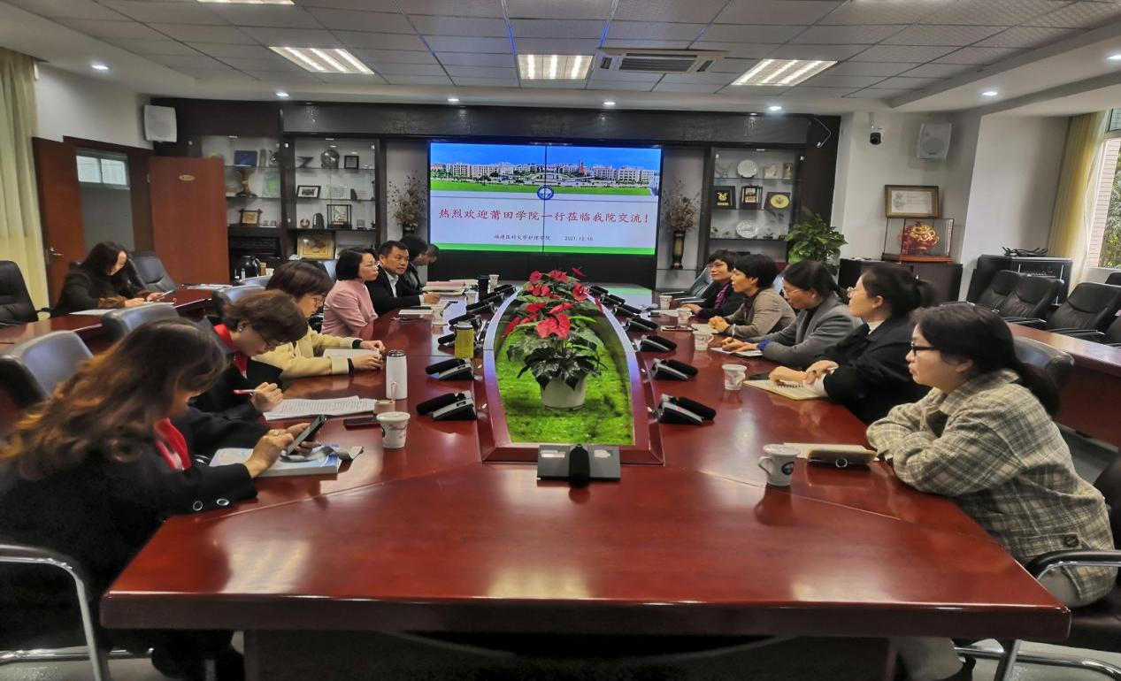 双方就专业建设、学科建设、学生三创项目开展、毕业论文指导情况、党建创新项目开展以及党建业务融合情况等方面进行交流。课程负责人还分享了五大金课的建设经验,莆田学院对我院五大金课建设取得的成绩给予了高度的赞赏。