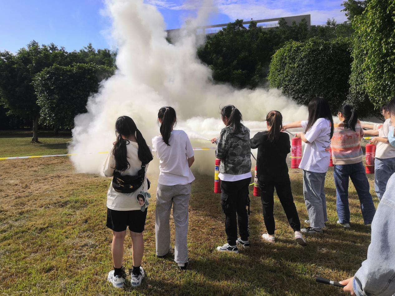 本次活动分为讲座、演练、实践三个环节。一是开展消防安全教育讲座。消防安全宣讲员陈老师通过近期发生的消防经典案例,对消防日常管理、检查及疏散逃生、火灾的应急和预防措施、消防器材的正确使用方法等进行了深入浅出的讲解,消防知识内容全面,与会师生进一步提高了消防安全意识。二是开展应急疏散演练。各组负责人员参照演习预定方案,在火情警报声拉响后,迅速组织学生紧急疏散,利用逃生通道及时逃离火灾现场,整个演练过程工分工明确,井然有序,师生的应急消防逃生能力进一步提升。三是油盘灭火演练。演练前,校保卫处消防科科长邓育新向学院师生强调了校园消防安全的重要性,并详细讲解了干粉灭火器的正确使用方法。随后,参加演练的师生按照操作方法分批次进行油盘灭火演练,体验干粉灭火器的操作流程。