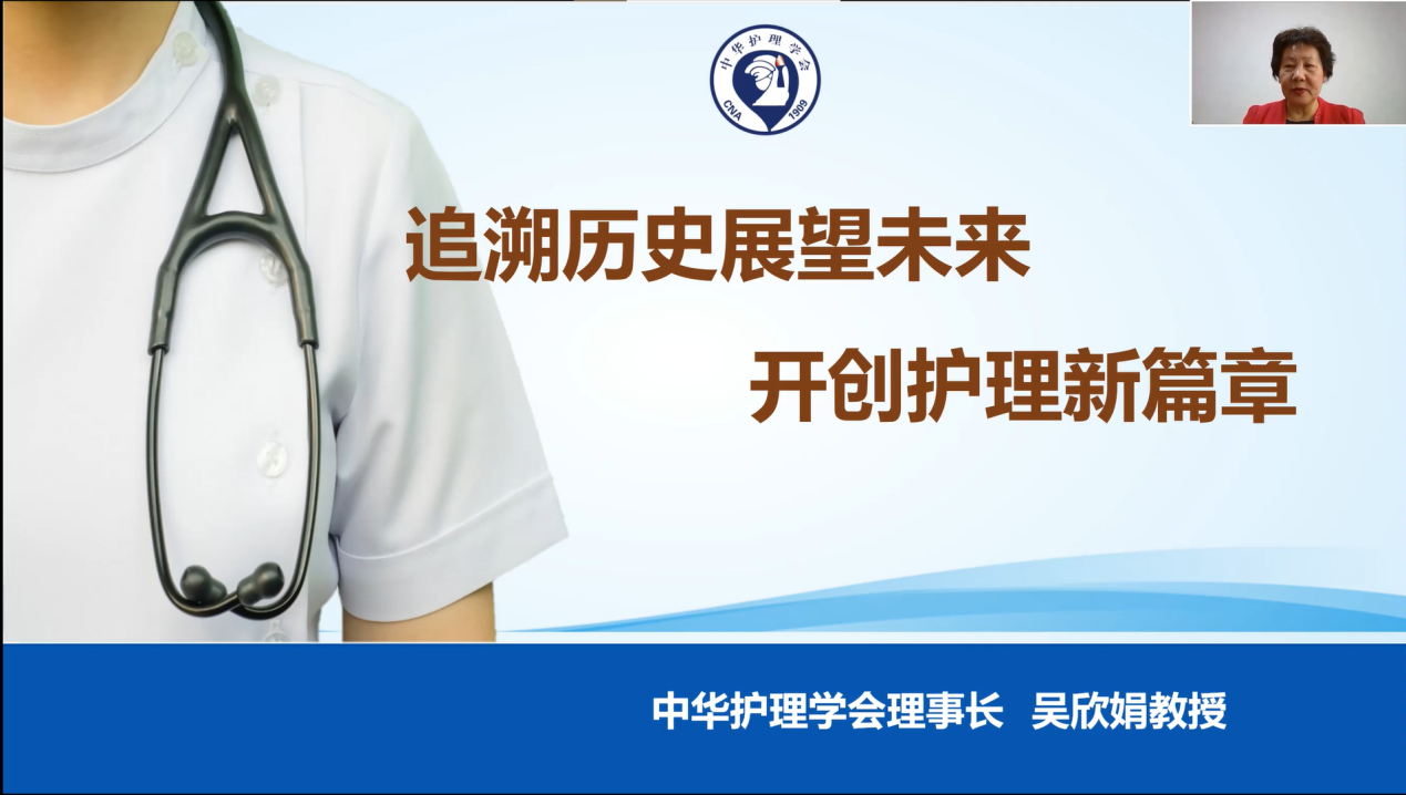 中华护理学会理事长吴欣娟教授做题为《追溯历史展望未来,开创护理新篇章》的专题报告。她回顾了中国早期护理事业的发展历史,强调国内外护理先辈对中国早期护理事业发展的贡献,指出新时代护理要以人民健康为中心,以改革创新为动力,推动护理事业高质量发展,呼吁护理同仁不忘初心,把握当下,砥砺奋进。