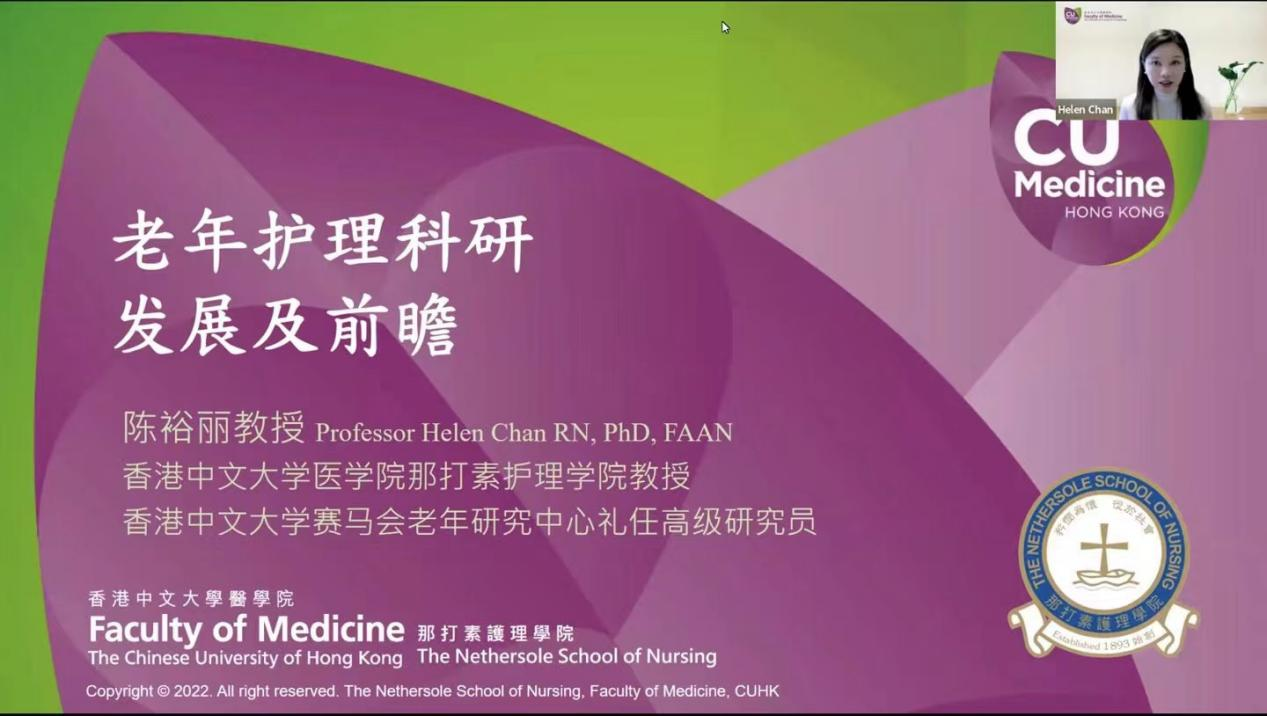 香港中文大学医学院那打素护理学院陈裕丽教授做题为《老年护理科研发展及前瞻》的专题报告,以《“健康中国2030”规划纲要》为指引,分析了老年心理健康与关怀服务、老年痴呆症的有效干预及安宁疗护一体化的健康和养老服务的研究现状,指出科研是政策落实和护理服务的助推器。