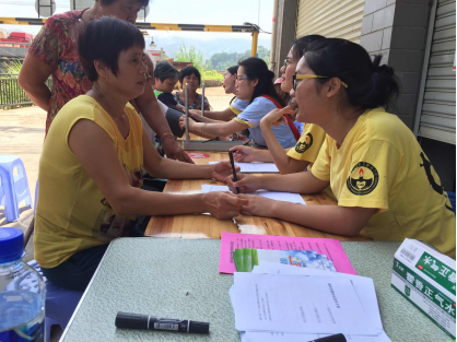 当天上午,队员们在当地工作人员的带领下对傩舞团队进行采访。“我们的团队是靠自愿的,但是现在想学傩舞的人越来越少,”大岭村傩舞团团长说道,“傩舞兼具祭祀和娱乐双重功效,‘摘下面具是人,戴上面具是神’”。采访结束后,队员们纷纷向傩舞表演艺术家学习傩舞。下午队员们协助随队医生在当地进行义诊,对当地村民进行普通的体检和农村常见病的宣传和知识普及。此次活动得到了三明志愿者联合会的大力支持。义诊过程中,发放了400余盒药品,500份医学常识问卷,500份建宁文化知识问卷。 传承中华文化是现代青年的责任。同时以健康教育服务规范为基础的义诊活动丰富了群众的预防保健知识,对现代医学具有重要意义。 (米兰milan官方网站护理学院团委) 义务义诊为民众,健康姿态靠自己 ——赴永定实践队暑期社会实践活动 7月7日上午,福医大2016年暑期赴永定实践队前往富岭村开展 “义务义诊为民众,健康姿态靠自己”的主题活动。