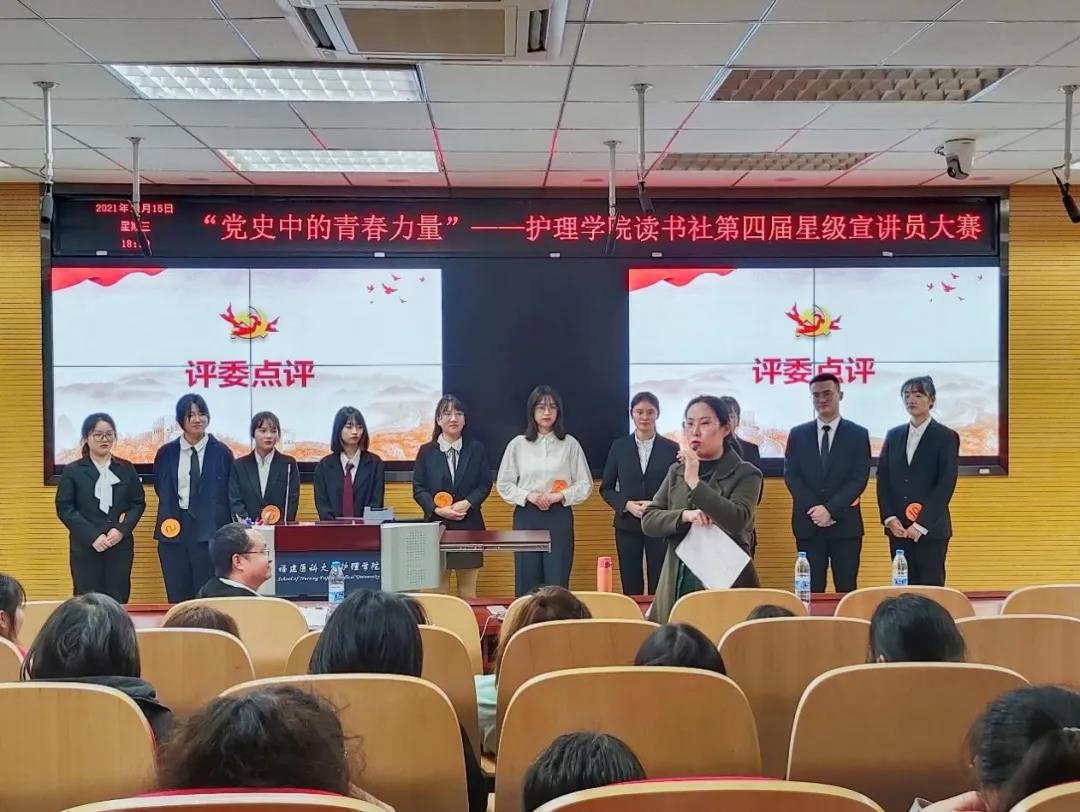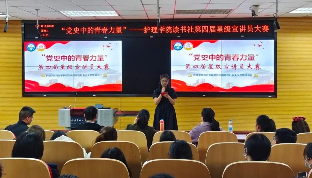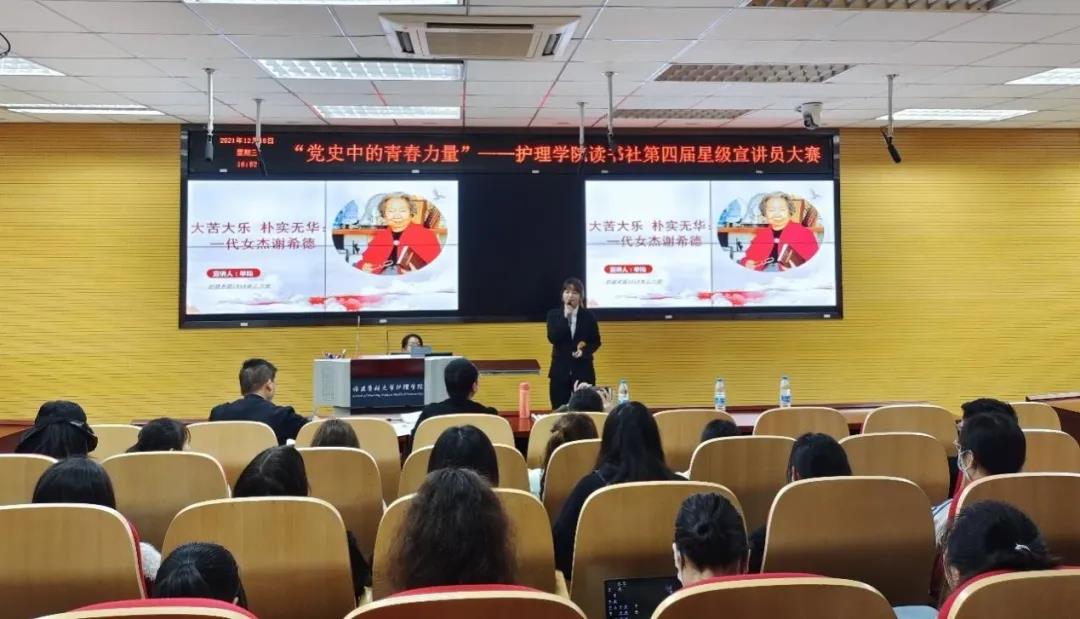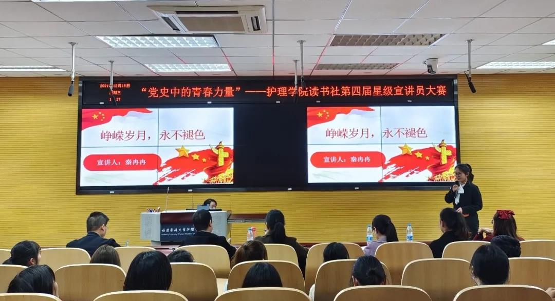 为深入学习贯彻党的十九届六中全会精神,不断提升青年读书社宣讲团的宣讲水平,12月15日,护理学院习近平新时代中国特色社会主义思想读书社于田家炳楼示教室成功举办“党史中的青春力量”第四届星级宣讲员大赛。