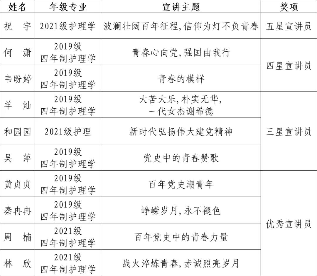 护理学院读书社第四届星级宣讲员大赛获奖名单