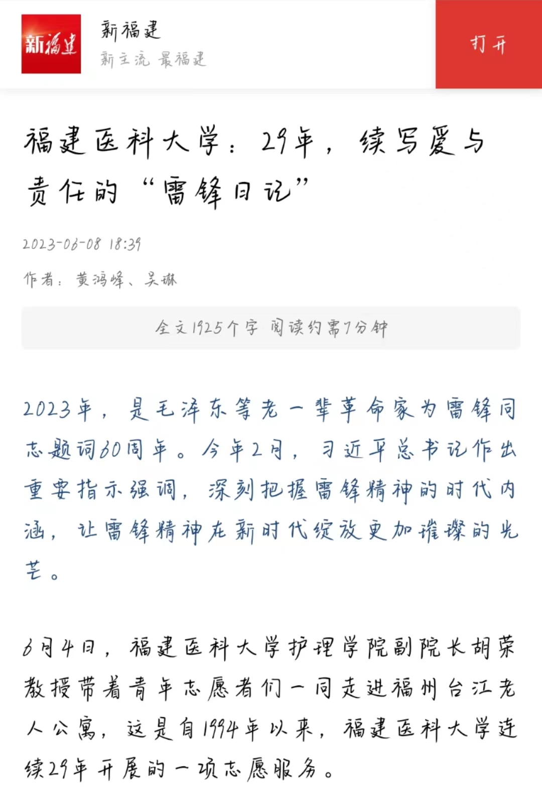 新福建报道护理学院志愿服务