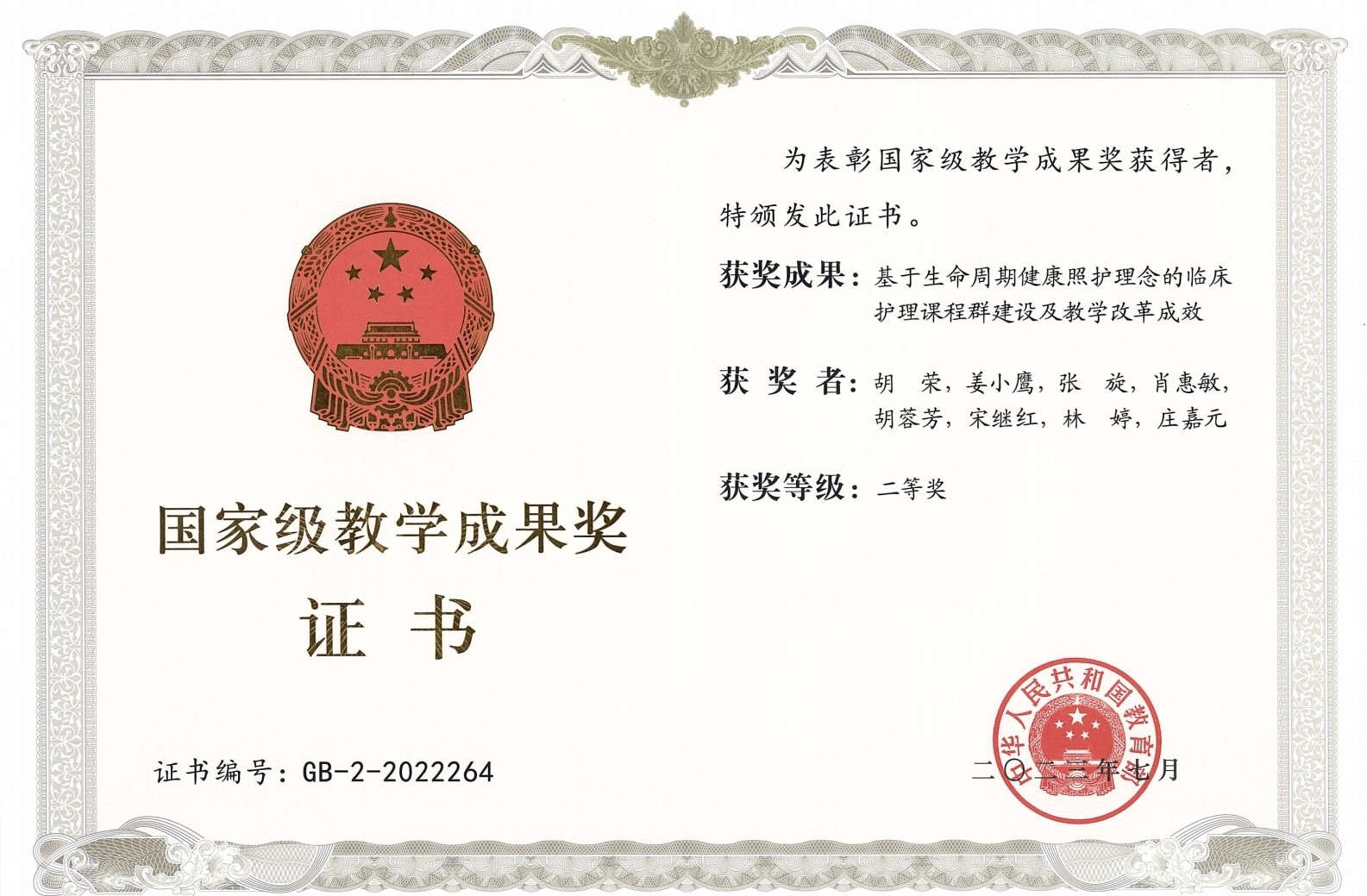 《基于生命周期健康照护理念的临床 护理课程群建设及教学改革成效》荣获国家级教学成果二等奖