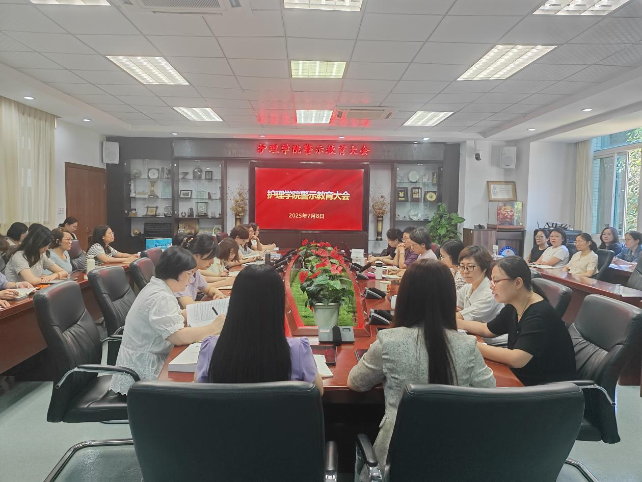 7月8日护理学院党委组织召开了警示教育大会,学院党委书记黄翎主持并讲话,强调要深入学习贯彻习近平总书记关于加强党的作风建设的重要论述,认真落实全省和学校警示教育大会精神,坚持以案为鉴、以案示警、以案促改,教育引导学院党员、干部树牢纪律意识,锲而不舍落实中央八项规定及其实施细则精神,推动学习教育不断引向深入学院全体教职工参加了会议。