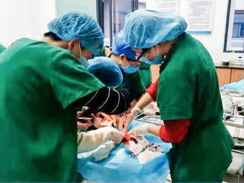 1.将小肠切断的两断端靠拢在一起,应用可吸收线间断或连续内翻缝合肠壁全层。