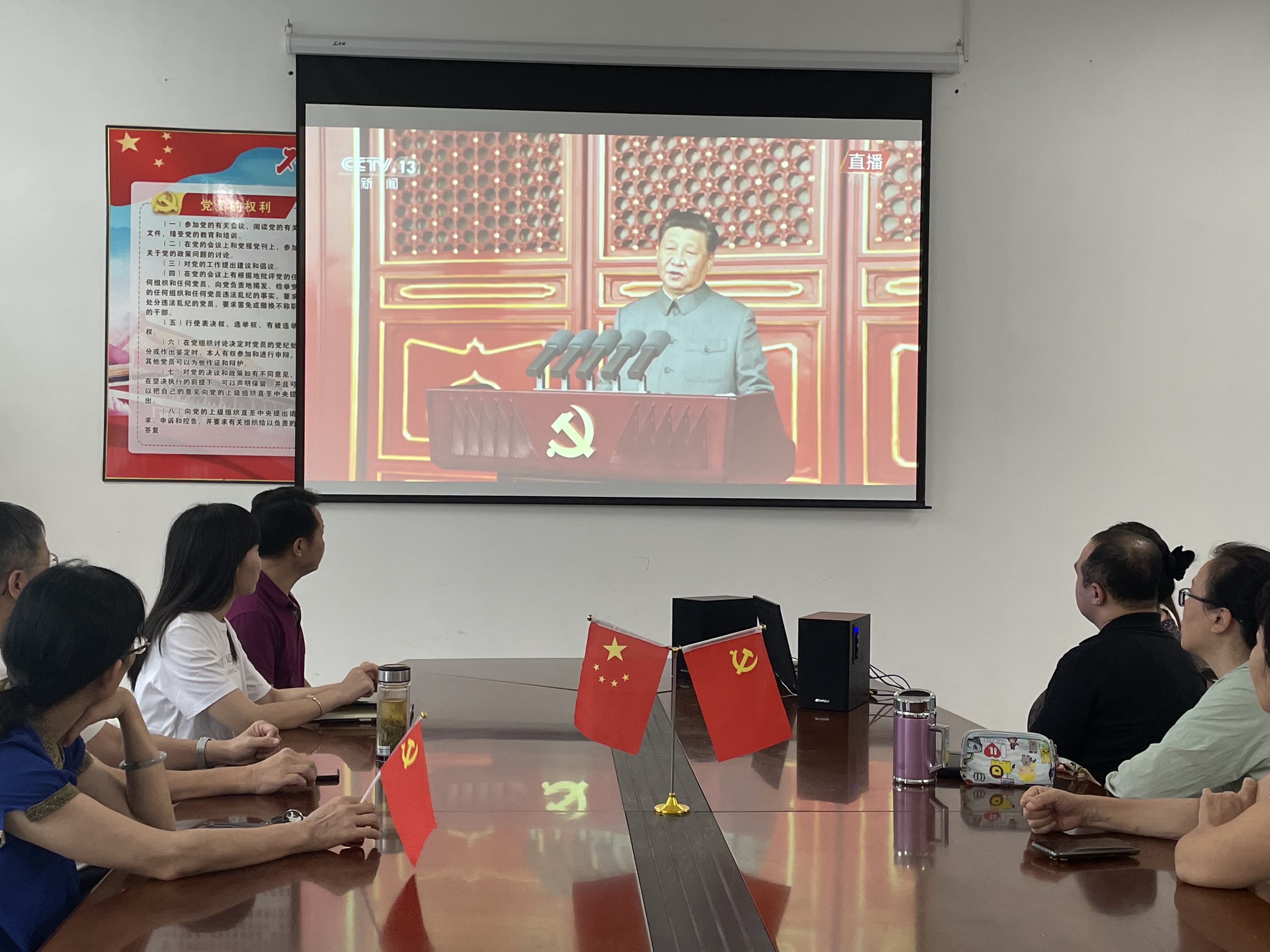 7月1日上午8:00,临床技能教学中心党支部组织全体党员和积极分子在会议室收看《庆祝中国共产党成立100周年大会》,聆听学习习总书记重要讲话,深受鼓舞和教育。