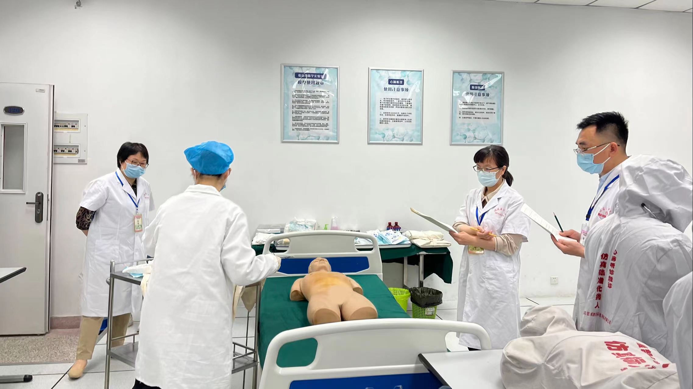 为保证本次测试工作顺利进行,临床技能教学中心前期做了充分的准备工作。考前组织开展了考官、标准化病人(SP)、志愿者等的培训工作,共培训各类人员约400多人次。