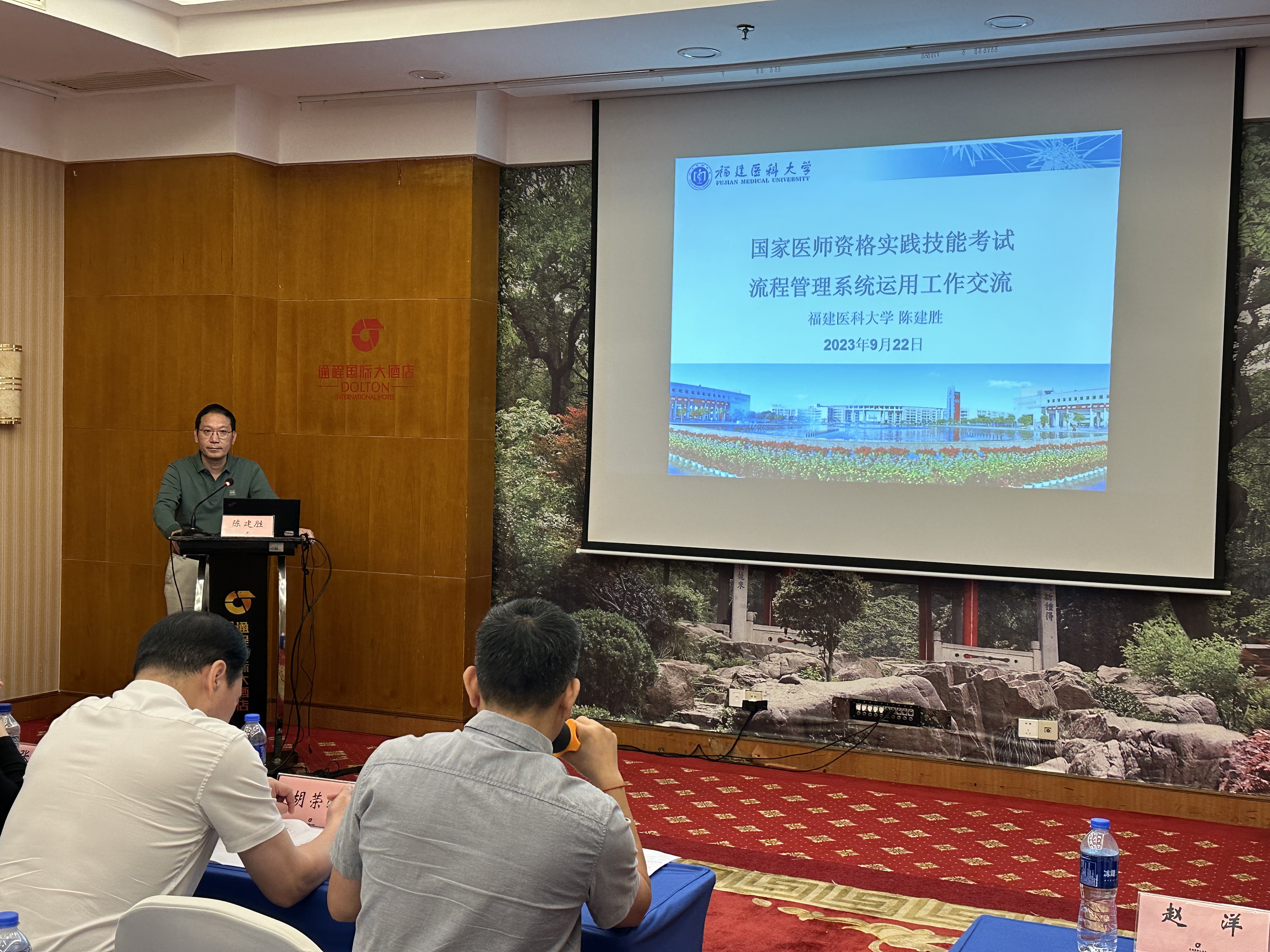 米兰临床技能教学中心代表我省临床类别国家医师资格考试基地在大会作汇报演讲。中心就近三年考试流程管理系统的组织实施情况、系统的应用优势以及基地的特色做法作汇报交流。