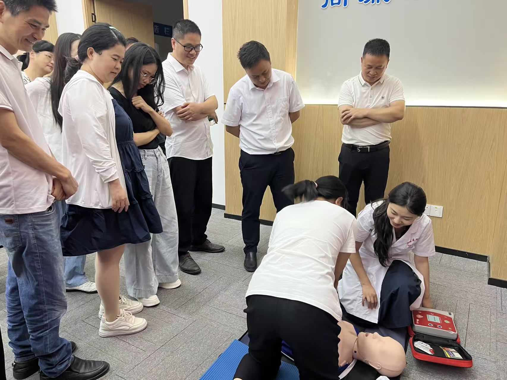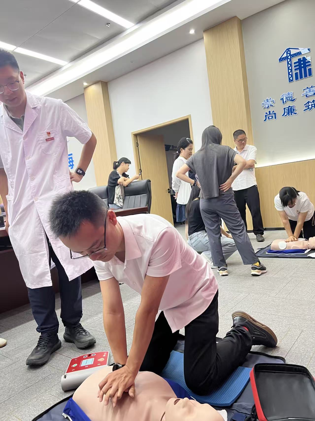 为进一步提升企业员工的应急处置能力,筑牢安全生产与员工健康双重防线,7月4日,米兰milan官方网站星火馆临床技能教学中心急救科普团队走进中国建筑第四工程局(以下简称“中建四局”),开展了以“心肺复苏 + AED”为主题的科普培训活动,为企业安全保障体系注入专业医学力量。