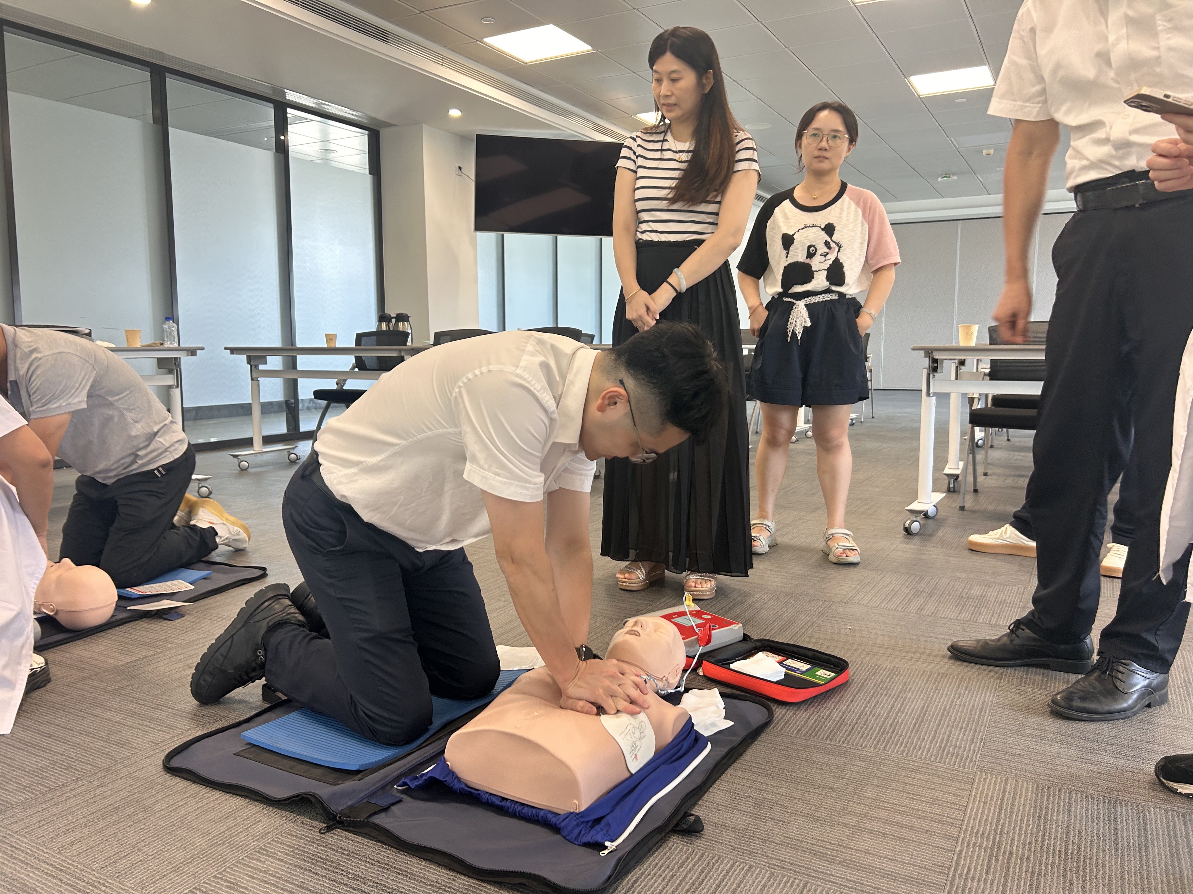 在理论讲授环节,曾爱英老师聚焦核心急救知识,运用图片、动画、视频等多种形式,生动细致地讲解心肺复苏(CPR)与自动体外除颤器(AED)的操作要领。随后的实操演练中,陈发仁老师以规范娴熟的动作进行了现场示范。参训员工学习热情高涨,积极参与实践操作。科普团队的老师全程跟进,以“一对一”的方式手把手进行指导,及时纠正动作、解答疑问。通过“理论+实操”的高效教学模式,厦航员工实现了急救知识与技能从认知到实践的转化,切实提升了应对突发情况的实战能力。