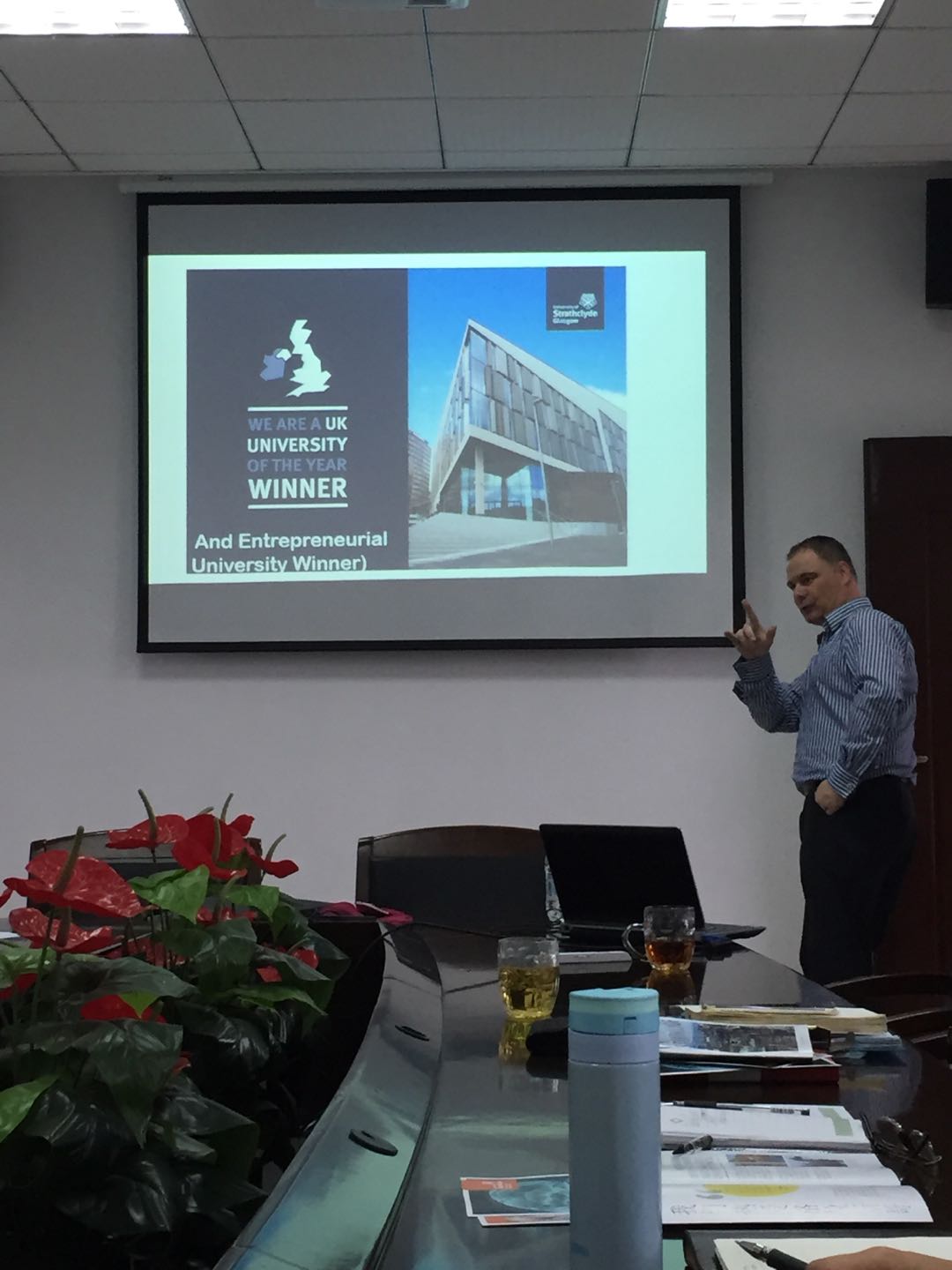 2017年11月08日上午,英国思克莱德大学本科心理学课程教学主任,博士生导师Dr. Stephen Kelly 来我院访问交流。人文学院林贤浩院长、许晓清书记、谭卫华副院长陪同访问。Dr.Kelly首先参观了人文学院临床心理行为实验教学中心,对我院的教学与研究设施表示印象深刻。之后Dr.Kelly为学院领导及教师代表们详细介绍了思克莱德大学心理学专业本科及研究生的课程设置,人才培养方案,实验室设置,实习安排等相关内容。双方就未来的合作办学方向,短期交流生项目及联合培养研究生的可能性展开深入的交流和热烈的讨论。未来将以此次访问为契机,加强加深沟通,尽快开展合作。(应用心理系 郑秋悦)