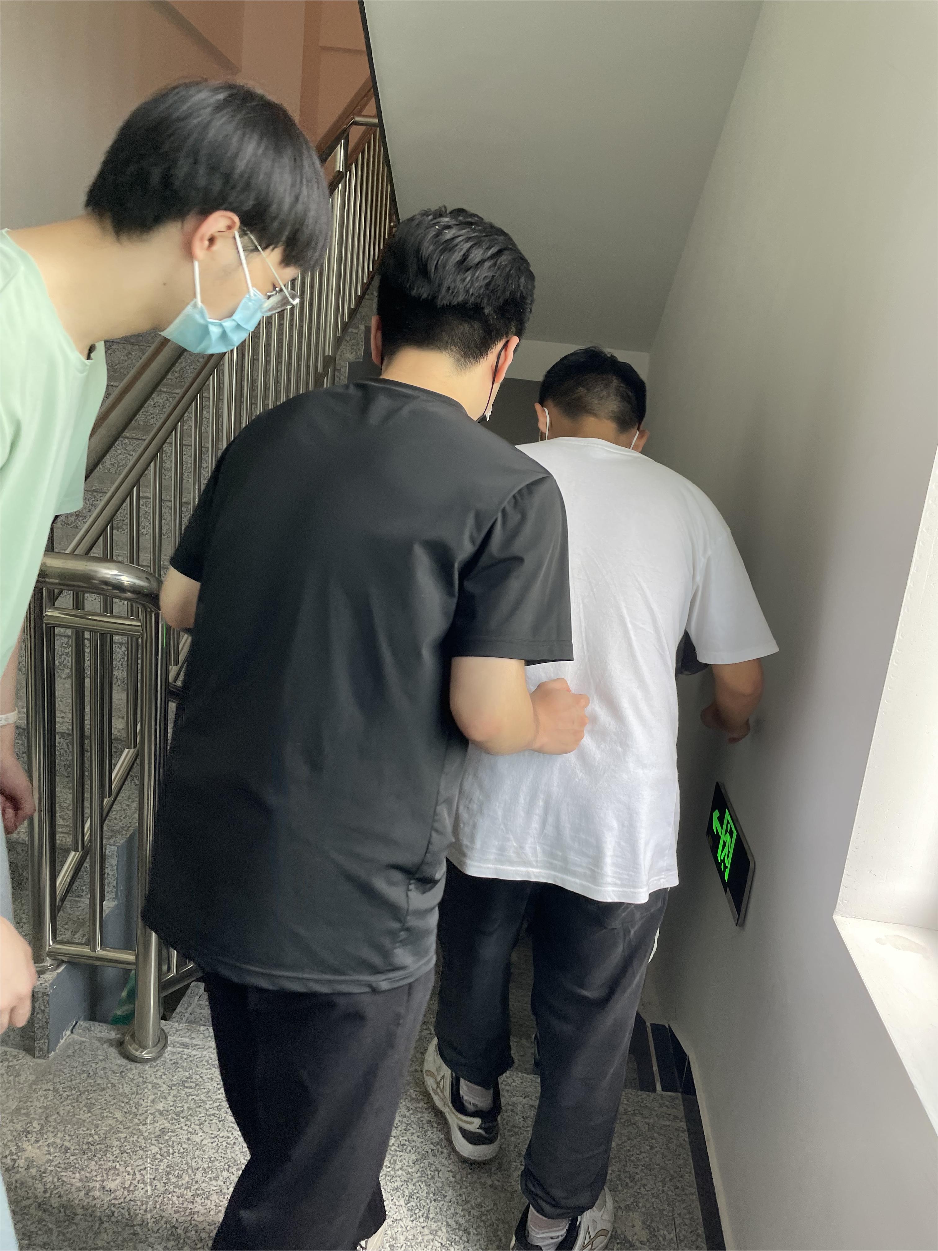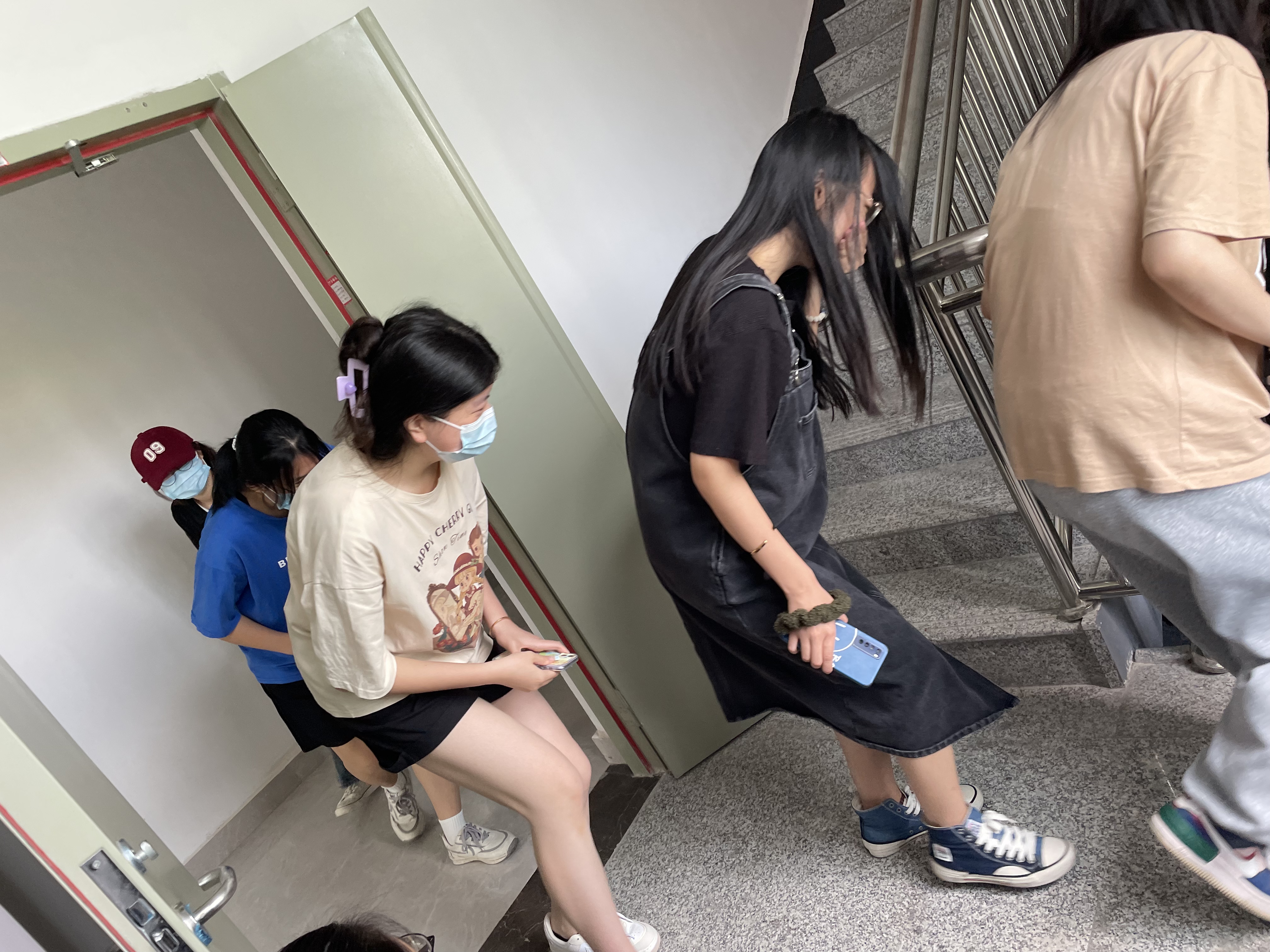 10时整,随着消防警报的响起,学生们按照应急预案,纷纷用手帕捂住嘴,弯着腰,由各实验室负责老师带队沿着消防逃生路线快速、有序地撤离到科技园前小广场完成人员安全疏散。