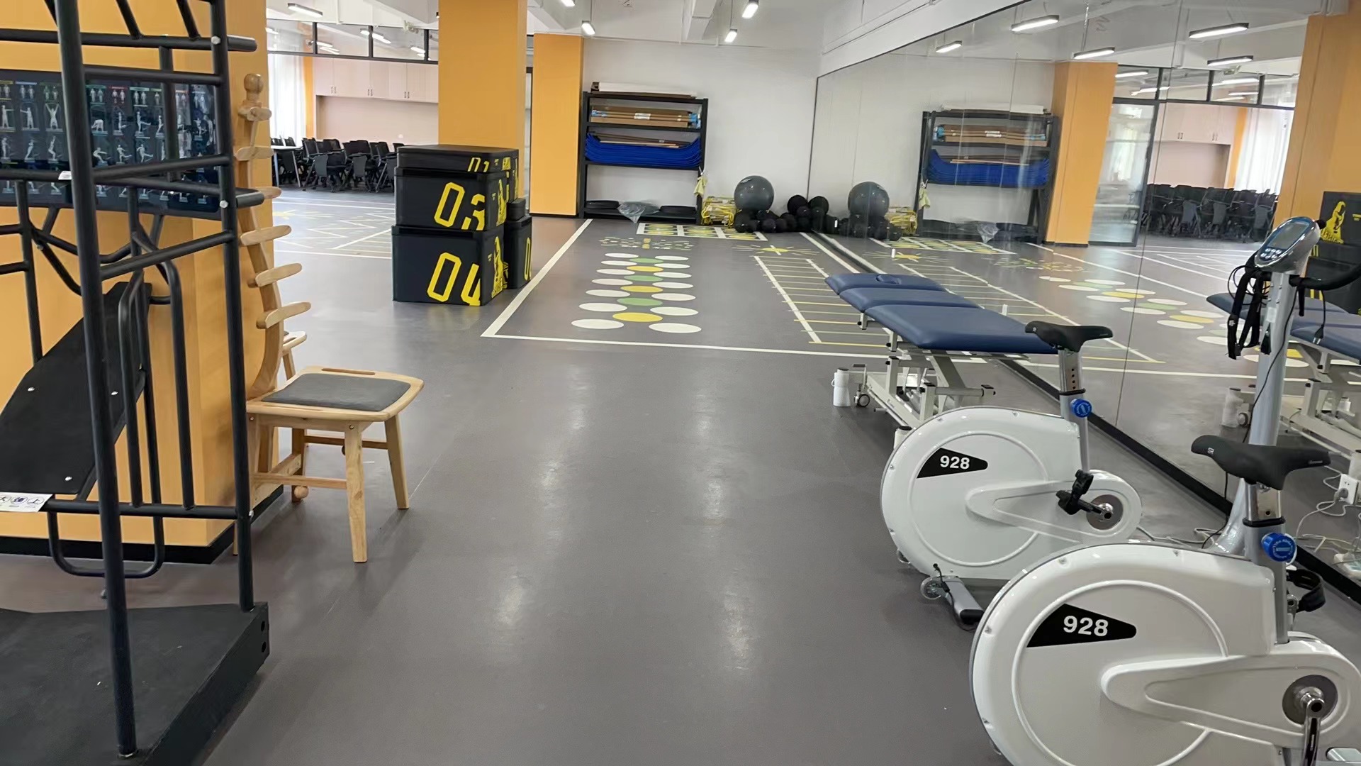 主要用于《运动损伤康复》、《运动医务监督》、《体质健康评价与运动处方》、《运动康复治疗技术》、《运动扎贴术(含运动损伤防护急救)》、《体能训练理论与方法》、《普拉提》等专业课程的实训教学。配备无氧功率自行车、有氧功率自行车、悬吊康复训练系统、功能性测试圆盘、功能性运动测试系统等设备,以及多套普拉提垫、弹力带、普拉提球等器械,为学生提供各类专业操作技术实训场景。