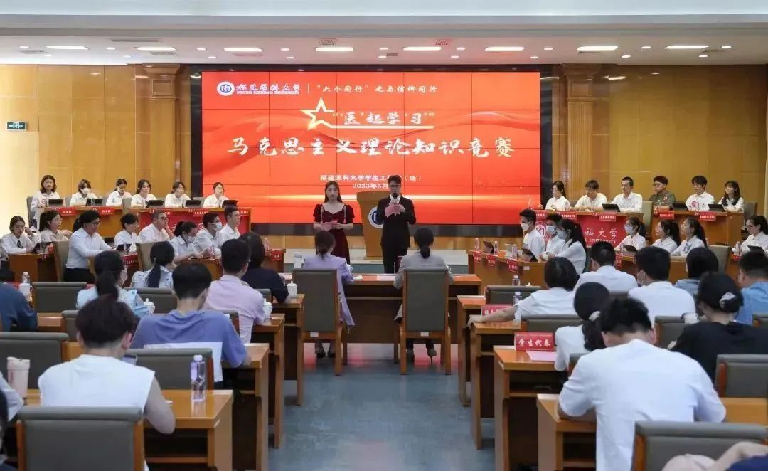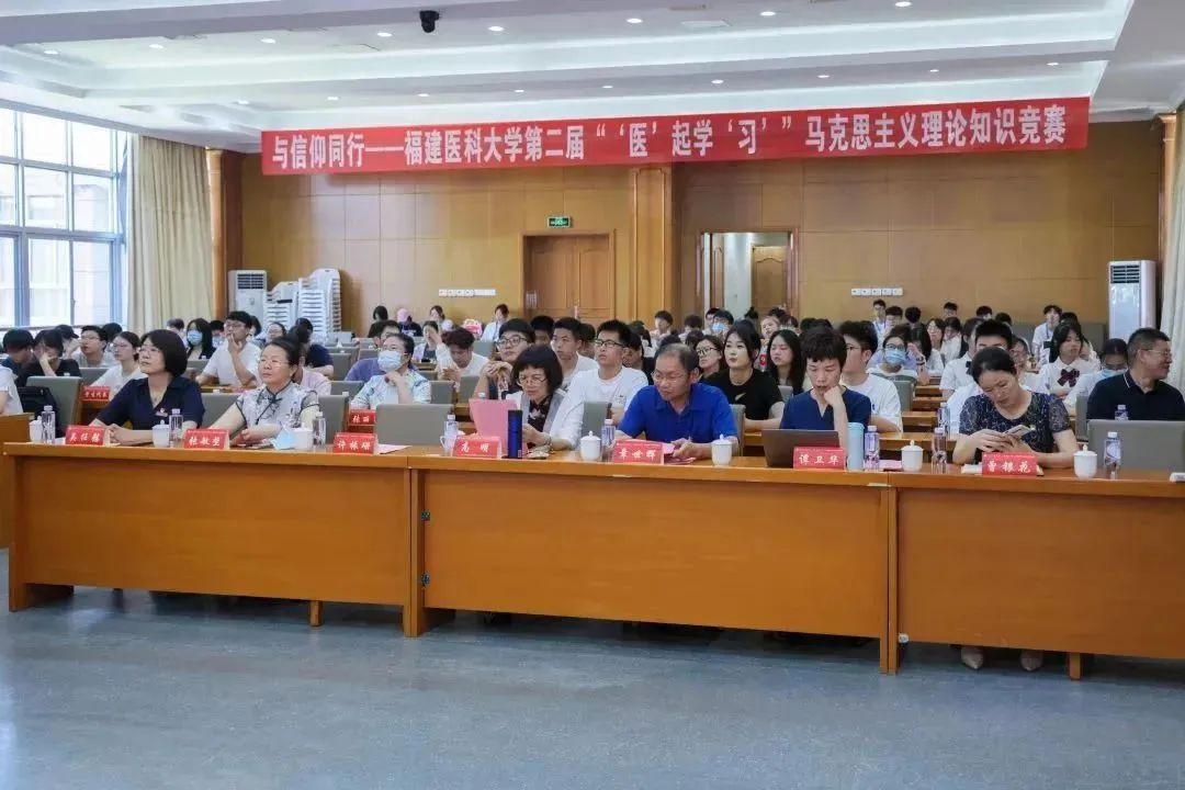 为进一步营造学习宣传贯彻党的二十大精神的浓厚氛围,深入开展学习贯彻习近平新时代中国特色社会主义思想主题教育,5月30日下午,由学生工作部主办的米兰milan官方网站“六个同行”之与信仰同行——第二届“‘医’起学‘习’”马克思主义理论知识竞赛总决赛在旗山校区行政楼学术报告厅隆重举行。校党委副书记黄爱民、党委宣传部、学生工作部、团委、马克思主义学院等单位负责同志,学院(部)党委副书记、指导教师、参赛选手、学生代表近两百人参加了本次活动。