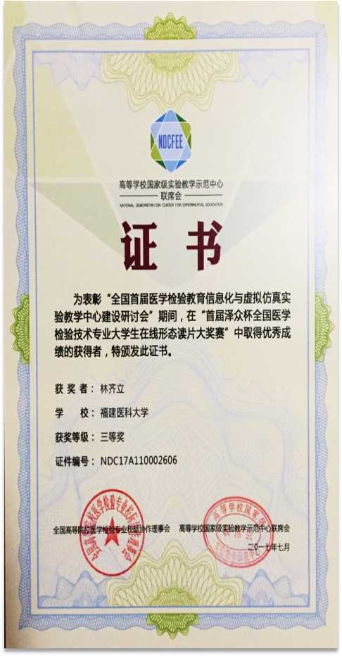 首届“泽众杯”全国医学检验技术专业大学生在线形态读片大赛三等奖