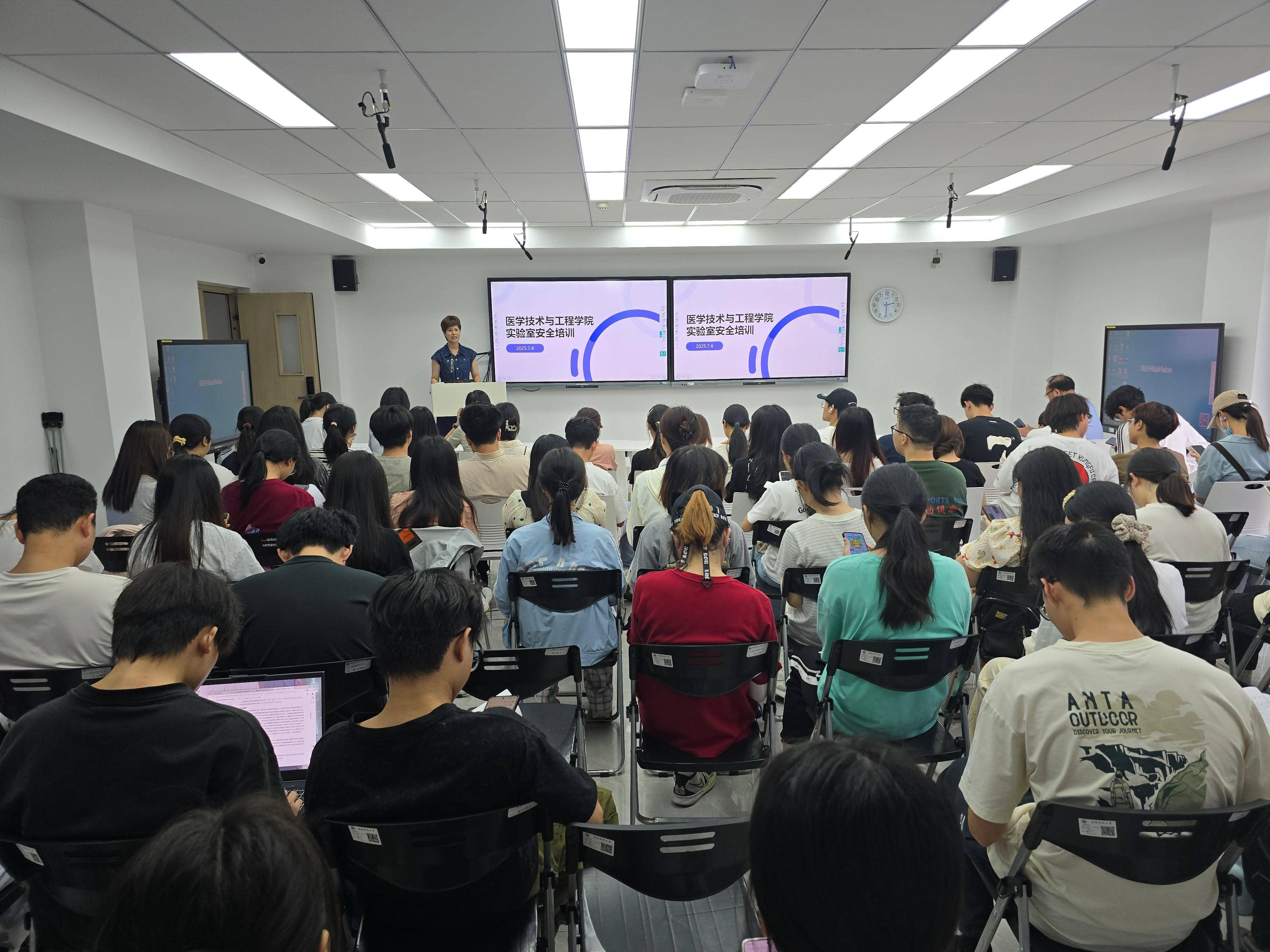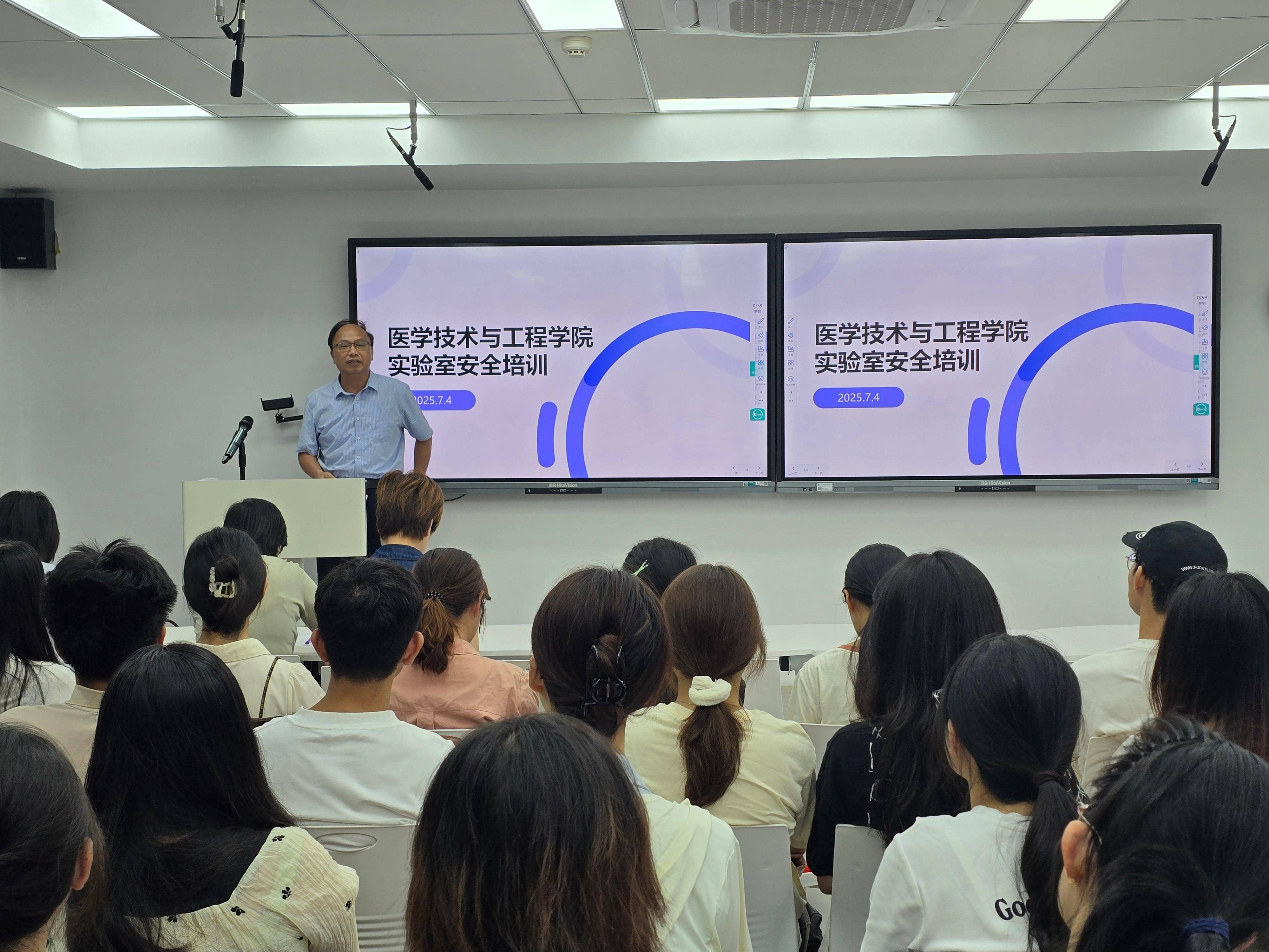 2025年7月2日,学院在旗山校区科技园B座组织开展消防及实验室安全培训。学院分管领导、实验室安全管理人员及待准入研究生和大创本科生80余人参加。培训会由医学技术实验教学中心副主任杨秀霖主持。